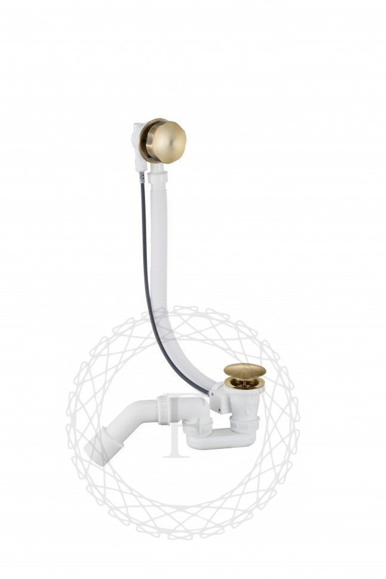 для ванны, бутылочный, латунь, резьба 1 1/2", слив 52 мм, труба 50 мм, длина 680 мм, гидрозатвор