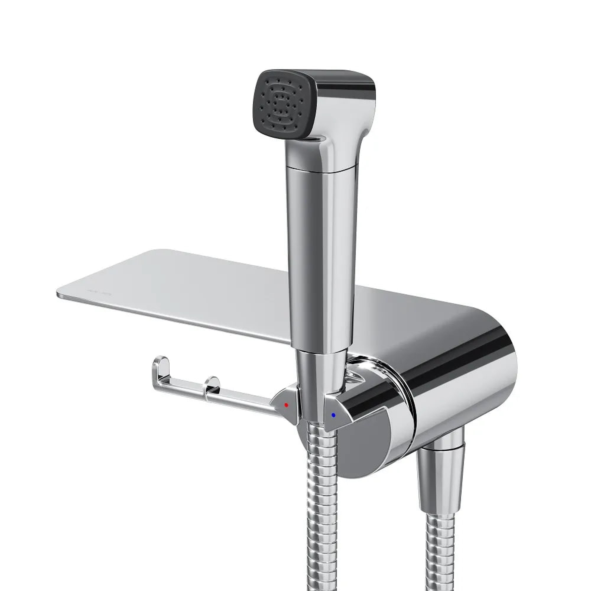 | Комплектация | держатель лейки, шланг, смеситель, гигиенический душ (лейка), полочка |