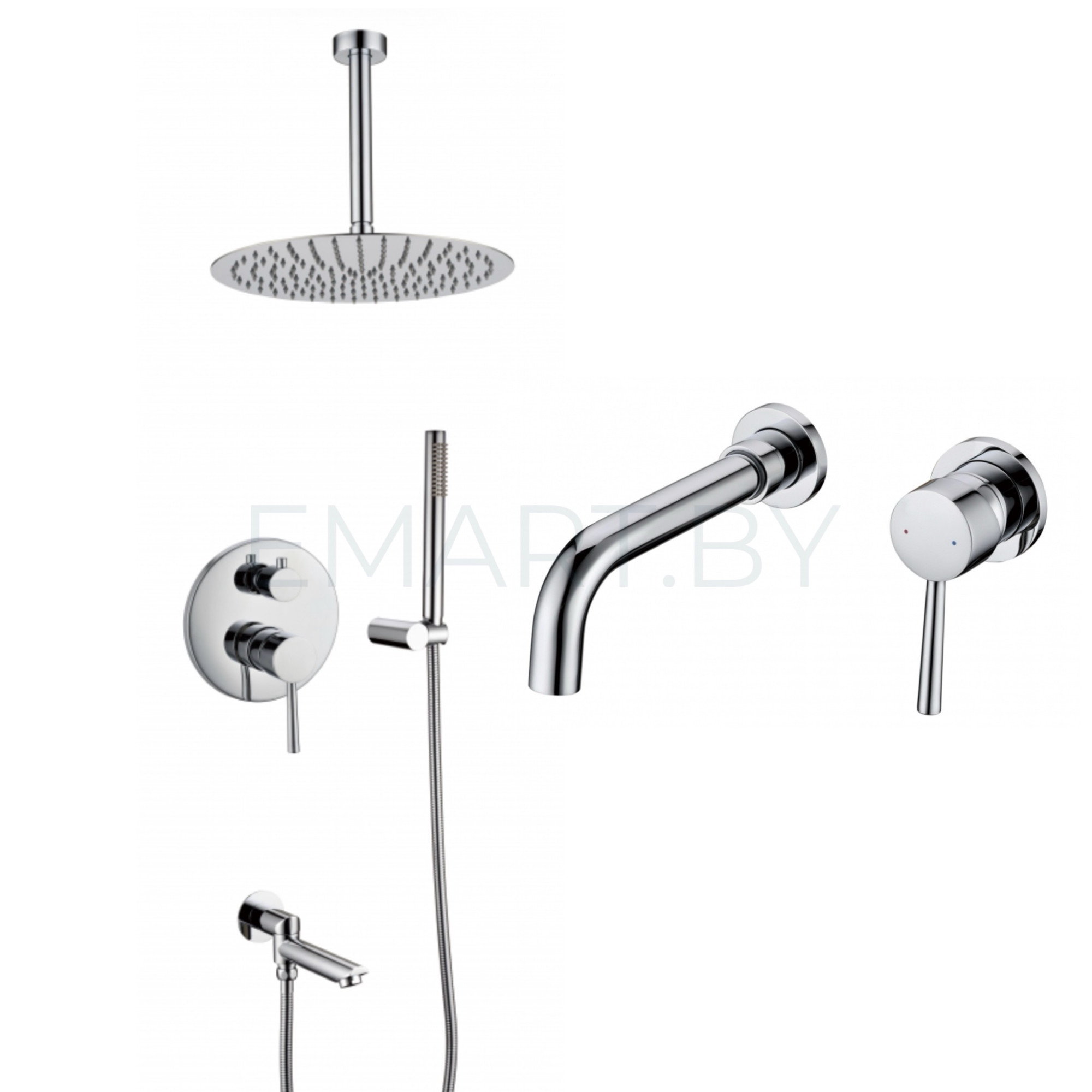 душевая система (с верхним душем), скрытый монтаж, отсутствует смеситель, верхний душ 300 мм, ручной душ 25 мм