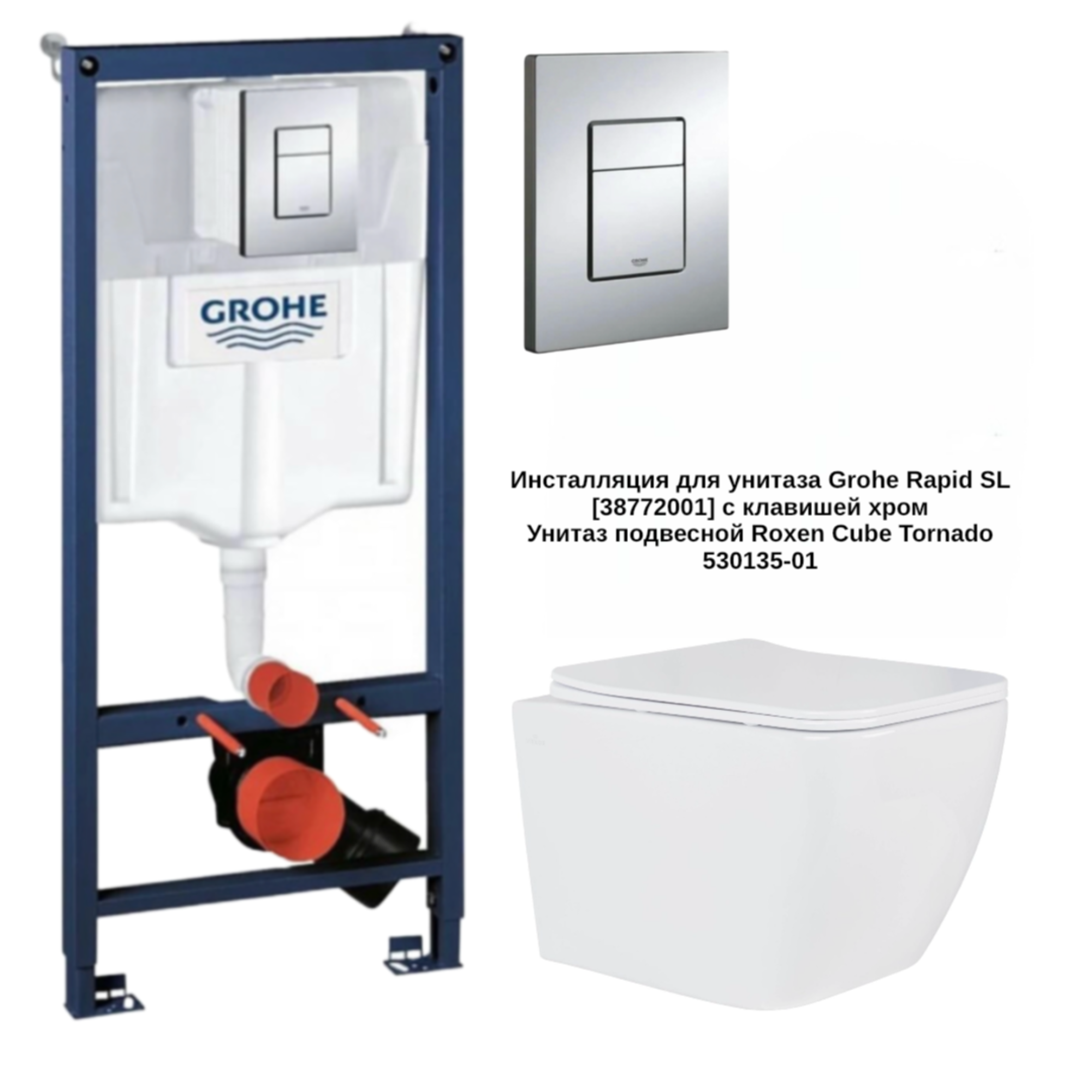Комплект Унитаз Roxen Cube Tornado 530135-01 с Инсталляцией Grohe Rapid SL 38772001 с клавишей хром
